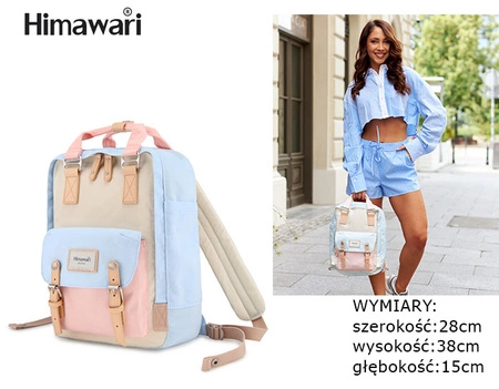 - Plecak Himawari wykonany z wodoodpornej tkaniny poliestrowej wysokiej jakości. Posiada kieszeń na laptopa o przekątnej do 14". Mieści format A4. Jego pojemność to 17 l. Zawieszony na dwóch szerokich szelkach zapewnia wygodę noszenia.