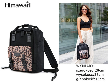 - Plecak Himawari wykonany z wodoodpornej tkaniny poliestrowej wysokiej jakości. Posiada kieszeń na laptopa o przekątnej do 14". Mieści format A4. Jego pojemność to 17 l. Zawieszony na dwóch szerokich szelkach zapewnia wygodę noszenia.