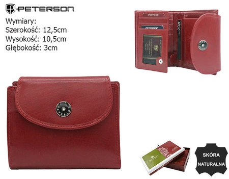 - Elegancki portfel damski marki Peterson wykonany z wysokiej jakości skóry naturalnej. Stylowy design i praktyczne wnętrze. Produkt zapakowany w eleganckie pudełko, idealny na prezent.