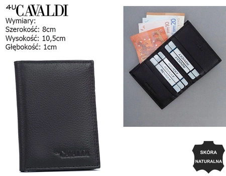 - Eleganckie, zamykane zatrzaskiem czarne etui na karty i dokumenty standardowego rozmiaru. Akcesorium wykonane ze skóry naturalnej. Wyposażone w aż 18 przegródek oraz membranę RFID STOP.