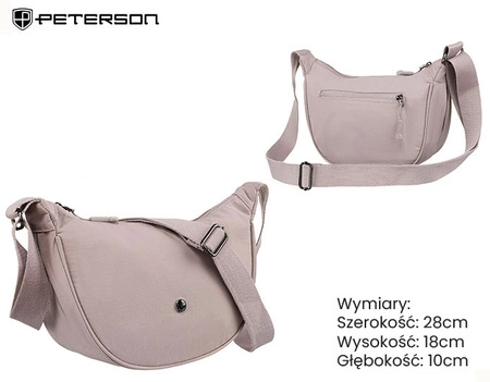 - Damska torebka Peterson z tkaniny poliestrowej to lekka, trwała i stylowa propozycja na co dzień. Pojemna, wodoodporna i wygodna – idealna do pracy, na zakupy i wyjazdy. Nowoczesny design i solidne wykonanie zapewniają komfort i elegancki wygląd.