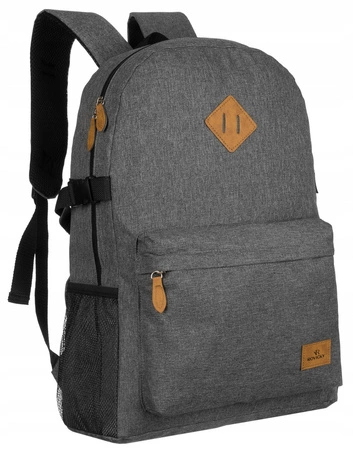 - Plecak wykonany z wysokiej jakości poliestru. Zawieszony na szelkach z regulacją. Posiada uchwyt na dłoń, który będzie przydatny np. w komunikacji miejskiej. Wszystkie jego metalowe elementy mają czarny kolor.