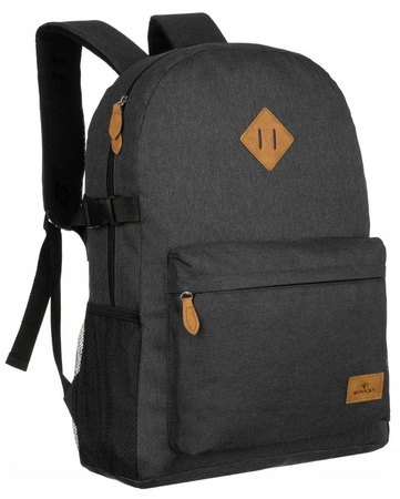 - Plecak wykonany z wysokiej jakości poliestru. Zawieszony na szelkach z regulacją. Posiada uchwyt na dłoń, który będzie przydatny np. w komunikacji miejskiej. Wszystkie jego metalowe elementy mają czarny kolor.