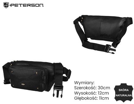 - Czarna saszetka męska skórzana marki Peterson – stylowa i funkcjonalna nerka na co dzień. Posiada praktyczne kieszonki na drobiazgi i regulowany pasek. Idealna do pracy, na wyjazdy i spacery. Wysoka jakość wykonania i wygoda noszenia.
