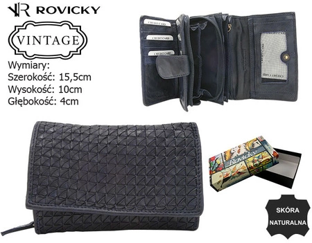 - Skórzany portfel damski średniej wielkości z ozdobnymi tłoczeniami 3D. Model z rozbudowanym wnętrzem na karty i dokumenty aż 17 przegródek oraz klasyczną sekcją na gotówkę. Mieści dowód rejestracyjny. Membrana RFID. Zapakowany w pudełko producenta.