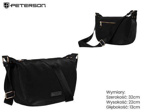 - Torebka z tkaniny poliestrowej marki Peterson to stylowy i praktyczny dodatek na co dzień. Posiada regulowany pasek, który zapewnia wygodę noszenia. Trwała, lekka i idealna do codziennych stylizacji.