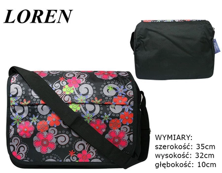 - Torba wykonana z poliestru. Zmieści laptopa z matrycą o wielkości 14". Komora główna i 3 kieszenie zamykane suwakiem. Jedna kieszeń mieści się wewnątrz, druga na froncie, trzecia na klapce. W wyposażeniu długi, regulowany pasek.