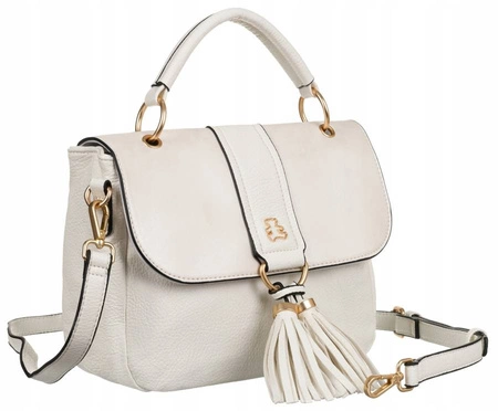 - Odszyta ze skóry ekologicznej. Front torebki zdobią dwa frędzle. Środek wyściełano podszewką. Torebka na długim pasku z klasyczną regulacją. Dwukomorowa z 5 kieszeniami.