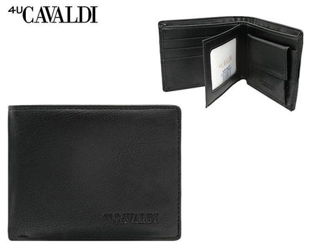 - Mały, klasyczny, czarny portfel męski odszyty z wysokogatunkowej skóry ekologicznej. Model poziomy bez zapięcia. Portfel wyposażony w siedem przegródek na karty, trzy kieszonki na banknoty i jedną na bilon.