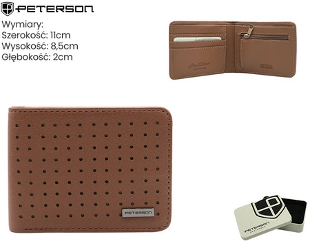 - Portfel męski Peterson z wysokiej jakości skóry ekologicznej. Elegancki, nowoczesny design, zabezpieczenie RFID. Idealny na prezent – zapakowany w stylową puszkę. Funkcjonalny portfel męski z ochroną danych.