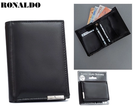 - Portfel męski skórzany, pionowy z eleganckim metalowym logo. Wykonany z naturalnej skóry, łączy klasyczny styl z funkcjonalnością. Praktyczny układ wnętrza. Zapakowany na blistrze – gotowy do ekspozycji i sprzedaży detalicznej.