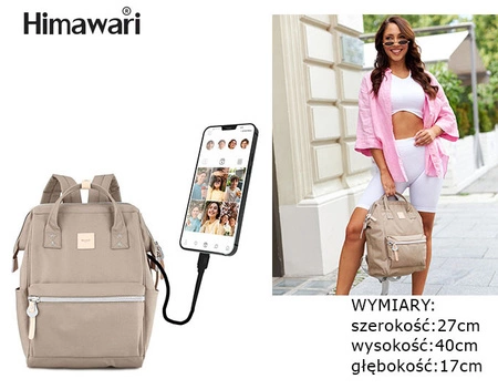 - Plecak z wodoodpornej tkaniny poliestrowej CANVAS. Pojemny i funkcjonalny. Wyposażony w liczne kieszenie. Mieści format A4. Posiada miejsce na laptopa do 13,3" oraz tablet do 10". Dodatkowym wbudowany port USB wraz z zewnętrznym kablem.