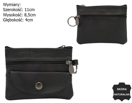 - Etui ze skóry naturalnej. Posiada cztery spore zamykane kieszonki. Wyposażone również w solidne kółeczko do zapinana kluczy.