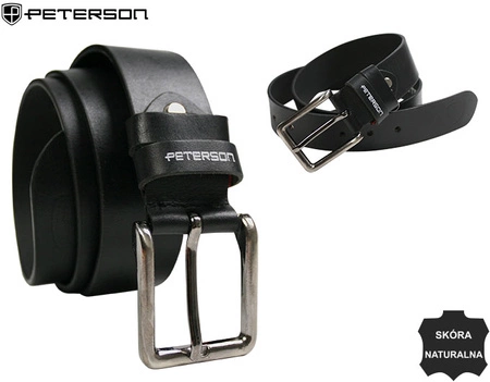 Męski pasek marki Peterson z naturalnej skóry, szerokość 3,5 cm. Wyposażony w klasyczną, metalową klamrę. Solidny i elegancki – doskonały wybór do codziennej sprzedaży hurtowej i jako uniwersalny dodatek.