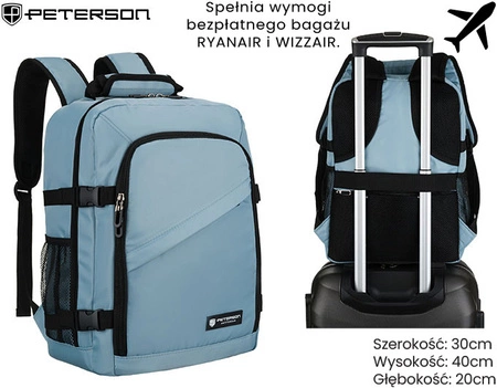 Pojemny plecak podróżny Peterson z praktycznymi przegrodami i kieszonkami oraz uchwytem na walizkę. Ułatwia organizację bagażu, zapewnia wygodę i sprawdza się w każdej podróży – idealny wybór na wyjazdy.