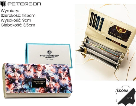 - Portfel Peterson wykonany z połączenia skóry naturalnej i skóry ekologicznej.