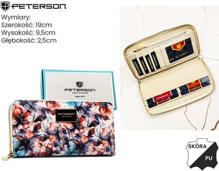 - Portfel Peterson wykonany z połączenia skóry naturalnej i skóry ekologicznej.