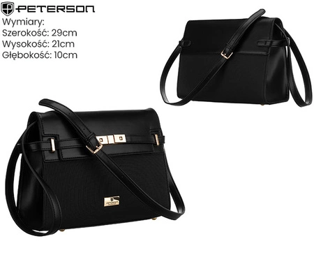 - Torebka damska Peterson to modny i wygodny model z długim paskiem, który zapewnia komfort noszenia na ramieniu lub przez ramię. Wyposażona w praktyczne kieszonki, ułatwia organizację i sprawia, że świetnie sprawdza się w codziennym użytkowaniu.