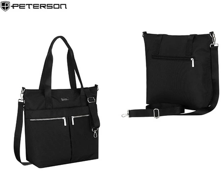 - Torebka damska Peterson o modnym designie łączy styl z praktycznością. Liczne kieszonki i ozdobne suwaki ułatwiają organizację, a doczepiany długi pasek daje wiele sposobów noszenia. Eleganckie logo podkreśla nowoczesny i elegancki charakter.