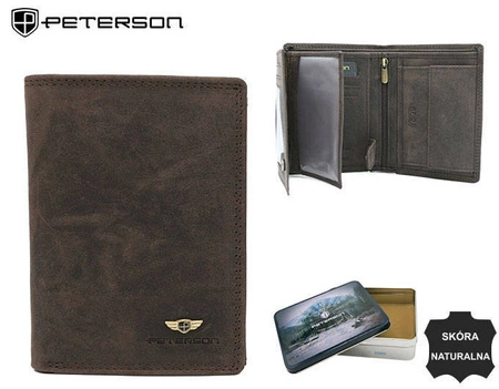 - Skórzany portfel bez zewnętrznego zapięcia. Wyposażony w zakładki na karty i dokumenty — pomieszczą dowód rejestracyjny. Na gotówkę przeznaczono dwie kieszenie na banknoty i przegródkę na bilon zamykaną zatrzaskiem. Akcesorium z systemem RFID Protect.