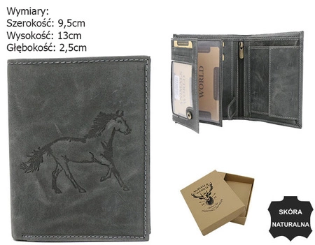 Męski portfel z naturalnej skóry nubukowej dla miłośników koni N4-CHM-HORSE BLACK