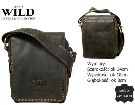 - Skórzana listonoszka męska zamykana klapą z zatrzaskiem. Jednokomorowa, wyposażona w długi pasek z regulacją.