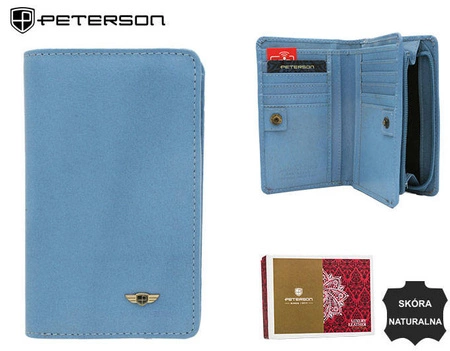 - Odszyty ze skóry naturalnej. Portfel o klasycznej stylistyce. Model w orientacji pionowej, zapinany bezpiecznym i trwałym zatrzaskiem. Wyposażony w technologię RFID BLOCKING SYSTEM.