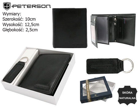 Zestaw prezentowy męski: skórzany portfel i brelok PETERSON PTN SET-M-1549-KCS