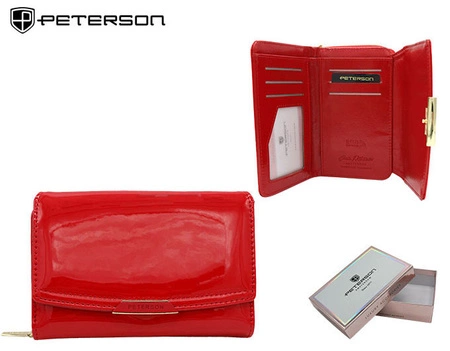 - Portfel ze skóry ekologicznej. Model w orientacji poziomej, zamykany klapką na zatrzask. Front ozdobiony logo marki. Portfel wyposażony w system STOP RFID, który zabezpiecza kartę przed kradzieżą środków z konta.