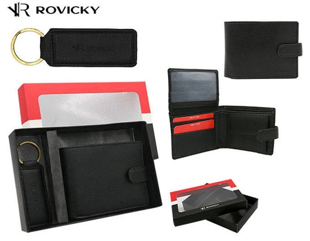 Zestaw prezentowy męski: portfel i brelok ze skóry eko ROVICKY R-SET-M-N003L-PUA