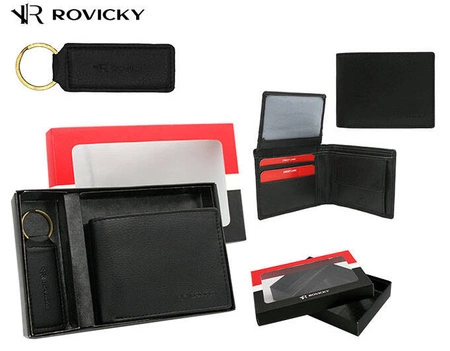 Zestaw prezentowy: portfel męski i brelok ze skóry eko ROVICKY R-SET-M-N003-PUA BLACK
