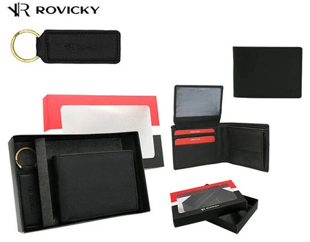 Dwuczęściowy zestaw prezentowy: portfel męski i brelok do kluczy ze skóry ekologicznej Rovicky® R-SET-M-N003-PUN w ofercie hurtowej