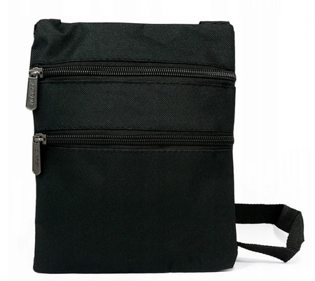 - Pionowe etui na paszport z tkaniny w czarnym kolorze. Wyposażone w kieszonki zamykane suwakiem. Idealne na podróże (mieści paszport).