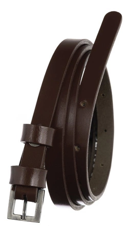 - Cienki pasek damski marki Rovicky. Wykonany z gładkiej, jednolitej skóry naturalnej. Wyposażony w metalową sprzączkę i szlufkę stabilizującą. Do regulacji obwodu osiem otworów.